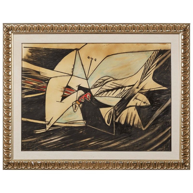 GIANNI DOVA (Roma 1925 - Pisa 1991) Senza titolo pastello su cartoncino cm 70x100 firmato in alto al centro al retro del supporto timbro Galleria Gissi al retro del supporto cartiglio Ditta Tartaglia, Roma al retro del supporto altro timbro illeggibile