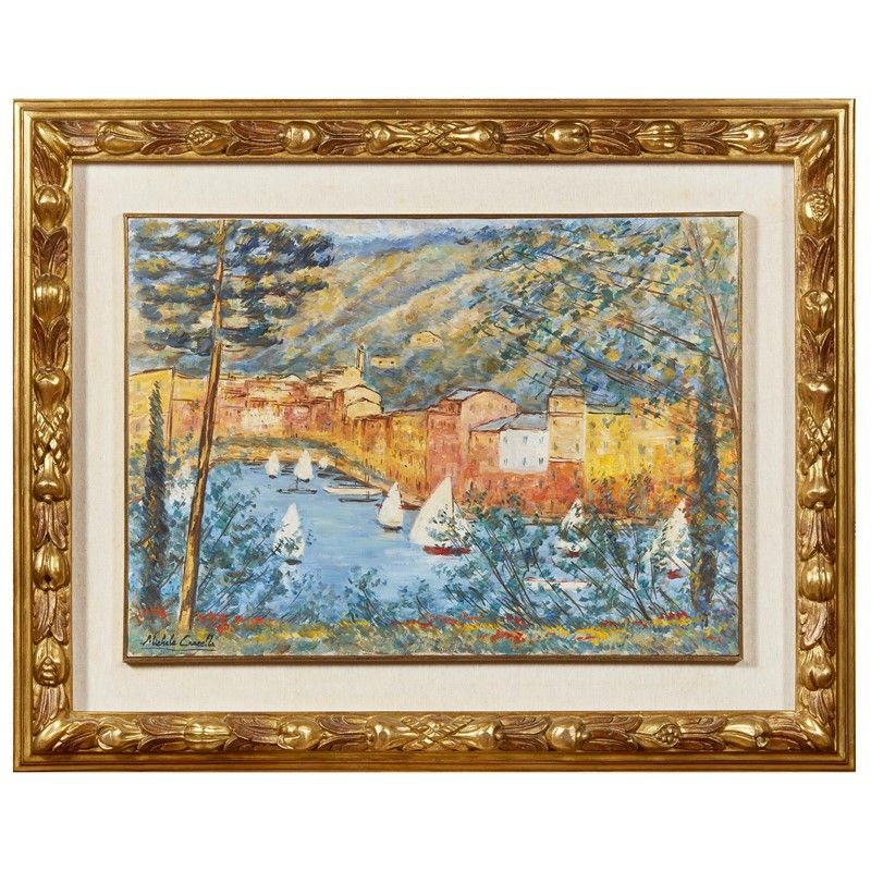 MICHELE CASCELLA (Ortona 1892 - Milano 1989) Regata a Portofino olio su tela cm 50x70 firmato in basso a sinistra al retro dichiarazione di autenticità firmata dall’artista