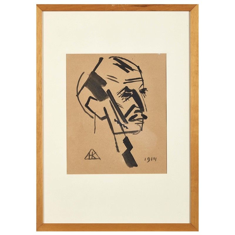NIKOLAI IVANOVICH KULBIN (Helsinki 1868 - San Pietroburgo 1917) Ritratto maschile 1914 tempera su carta cm 29x25 siglato in basso a sinistra datato in basso a destra