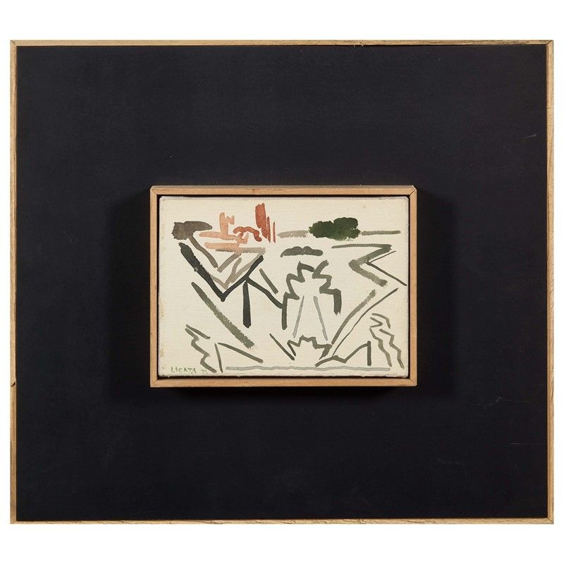 RICCARDO LICATA (Torino 1929 - Venezia 2014) Senza titolo 1972 acquerelli su cartoncino applicato su tela cm 12,3x17 firmato e datato in basso a destra al retro del supporto cartiglio esposizione