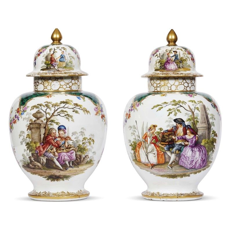 COPPIA DI VASI CON COPERCHIO, GERMANIA, SECOLO XIX