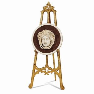 RILIEVO, FINE SECOLO XIX in marmo bianco e rosso di forma circolare centrato da rilievo con testa di Medusa, completo [..]