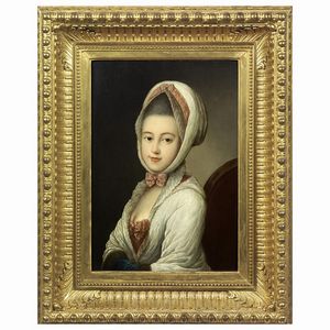 Scuola francese, secolo XVIII RITRATTO DI FANCIULLA olio su tavola, cm 43x29 Entro cornice in legno intagliato [..]