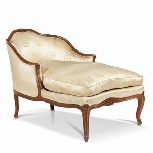POLTRONA DA RIPOSO, FRANCIA, SECOLO XVIII in legno intagliato, schienate e braccioli di linea mossa con inserti [..]