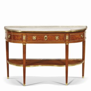 SERVANTE, FRANCIA, FINE SECOLO XVIII in mogano a demi lune, piano in marmo bianco bordato da ringhierina in bronzo [..]