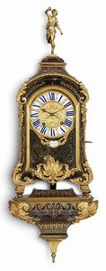 OROLOGIO CARTEL CON MENSOLA IN STILE BOULLE, FRANCIA, SECOLO XVIII in legno ebanizzato intarsiato in metallo dorato [..]