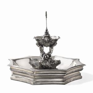 FONTANA DA TAVOLO, ROMA, SECOLO XX in argento raffigurante la Fontana dei Tritoni al Foro Boario a Roma, opera [..]