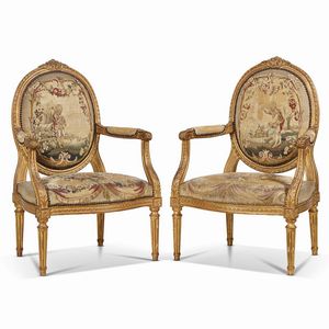 COPPIA DI POLTRONE, INGHILTERRA, PRIMA METÀ SECOLO XIX in legno in mogano lastronato e intarsiato a motivo [..]