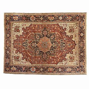 TAPPETO TABRIZ, PERSIA, FINE SECOLO XIX a fondo rosa arancio con medaglione blu e riquadri avorio, con eleganti [..]