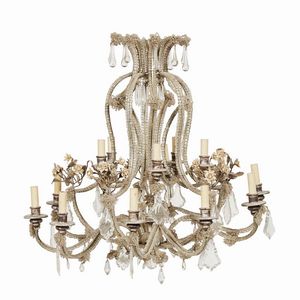 LAMPADARIO, FINE SECOLO XIX in bronzo dorato, finemente lavorato ad imitare tralci di vite e grappoli d’uva [..]