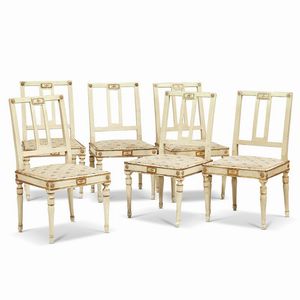 COPPIA DI SPECCHIERE, ITALIA CENTRALE, SECOLO XVIII in legno intagliato e dorato di linea sagomata con inserti [..]