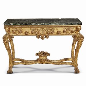 CONSOLE DA PARETE, ITALIA SETTENTRIONALE, FINE SECOLO XVIII in legno intagliato, dorato e parzialmente lastronato [..]