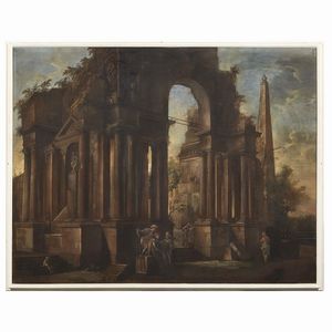 FIGURA ACEFALA, SECOLO XIX in gesso patinato, raffigurante busto virile inginocchiato su base di forma ovale, [..]