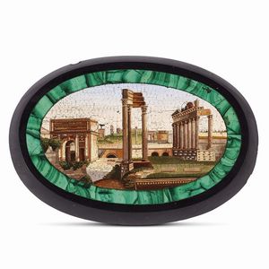 PIANO, ROMA, FINE SECOLO XIX lastronato in marmi vari, piano di forma rettangolare con bordo in nero e cornice [..]