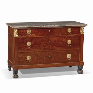 CASSETTONE, FRANCIA, SECONDA METÀ SECOLO XVIII in mogano con piano in marmo bianco stondato agli angoli, [..]