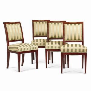 COPPIA DI GUERIDON, VIENNA, PRIMA METÀ SECOLO XIX in mogano con sottili intarsi e applicazioni in ottone, [..]