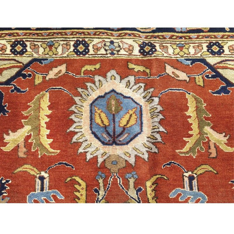 a fondo rosa arancio con medaglione blu e riquadri avorio, con eleganti decori nel campo, cm 405x285
