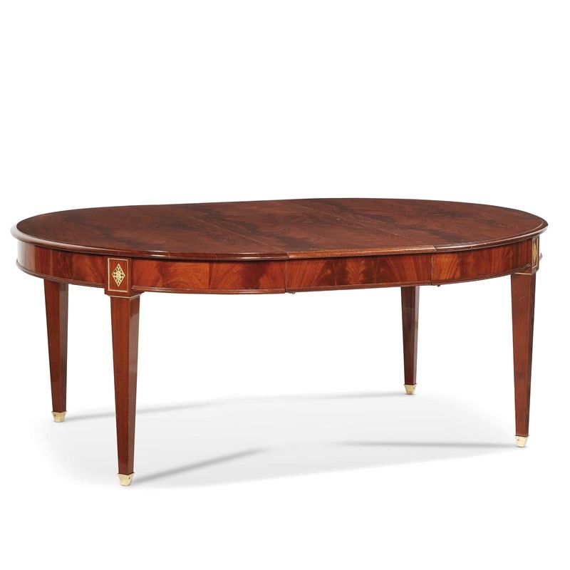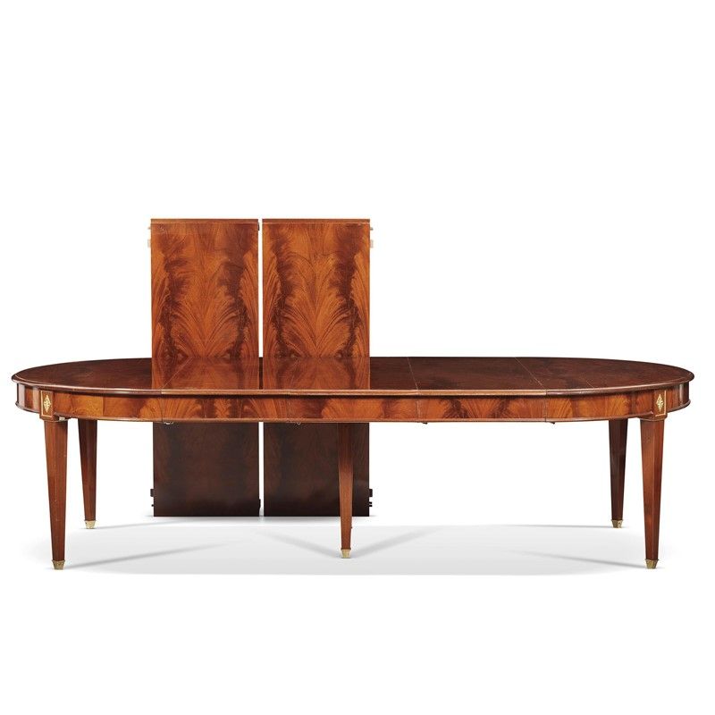 in mogano con applicazioni in bronzo dorato sulla fascia e ai piedi, completo di quattro prolunghe; cm 78x192x140; completo di quattro prolunghe da cm 50 ciascuna