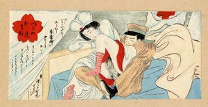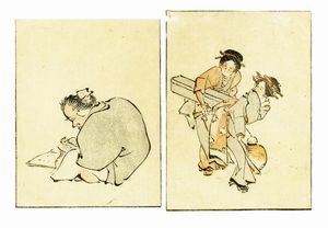 Xilografia a colori (nishiki-e). Formato: hanshibon (doppia pagina mm 190x260). Cinque tavole da libretto ero [..]