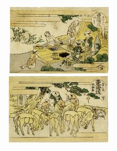1833?34 ca. (Tenpô 4?5) Xilografia a colori (nishiki-e). Formato: ôban orizzontale (mm 225x352). Firma: [..]