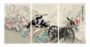 1894 ca. Xilografia a colori (nishiki-e). Formato: trittico ôban tate-e verticale (mm 365x720). [..]