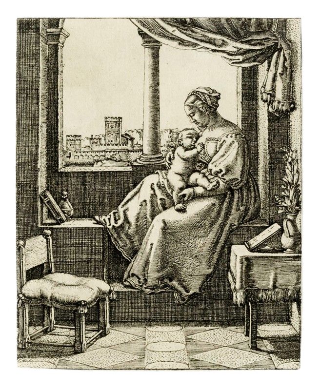 Bulino. mm 102x81. Bartsch, VIII, 8. Hollstein, 9. New Hollstein, 8. Bellissima prova di questa rara incisione nell'unico stato, impressa con ottima definizione di segno su carta vergellata sottile priva di filigrana.