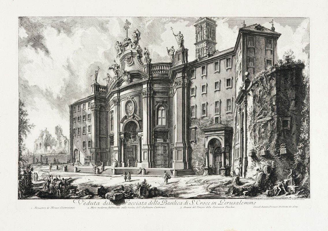 Acquaforte. mm 405x617. Foglio: mm 495x708. Focillon, 729. Hind, 11. Da Le Vedute di Roma. Bellissima impressione, nel III stato di 6 con l'indirizzo e il prezzo e nuova morsura più incisiva sul primo piano a sinistra, stampata con inchiostrazione piena e brillante su carta vergellata pesante con filigrana "fiore di giglio in doppio cerchio sormontato da lettere CB" (Robison, 39).