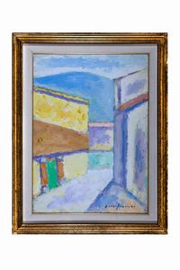 Olio su tavola. cm 22,5x30. Firmato in basso a sinistra. Al verso : timbro ad inchiostro di Virgili Gino con [..]