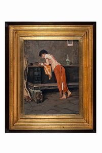 Olio su tela. cm 52,8x39. Firmato in basso a destra. Opera dall'ottima fattura e scelta cromatica: il colore [..]