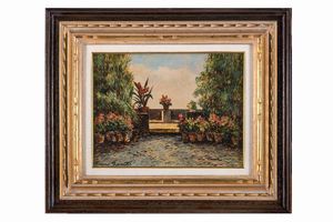 Olio su tela. cm 41,5x53. Firmato in basso a destra. Al verso : Etichetta a stampa "Mostra d'arte in favore [..]