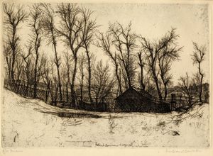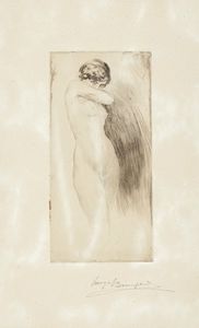 1924. Acquaforte. mm 170x140. Foglio: mm 360x250. Firmata in lastra in basso a destra. Titolo, controfirma e [..]