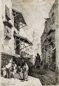 1872. 1) Strada del Cairo . 1872. Acquaforte su carta applicata a velina. mm 280x190. Foglio: mm 283x200. Firmata [..]