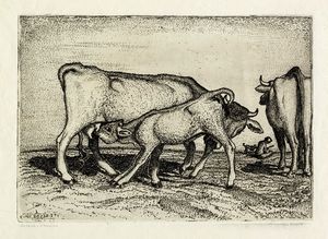 1) L'ora del ritorno . Acquaforte. mm 195x235. Foglio: mm 350x447. Firmata in lastra in basso a destra, controfirmata [..]