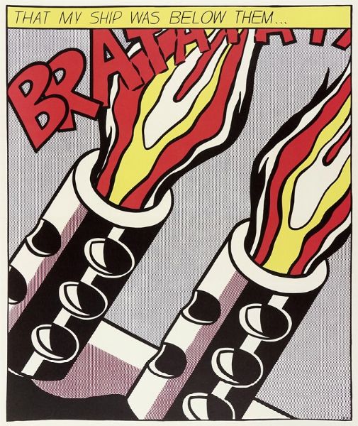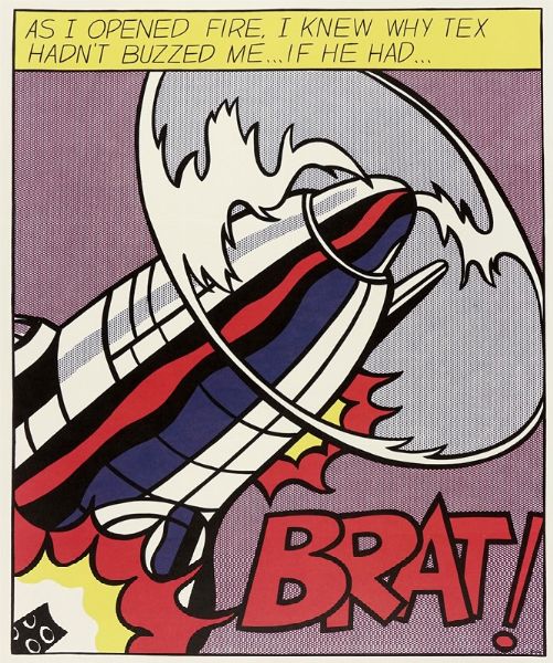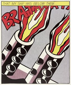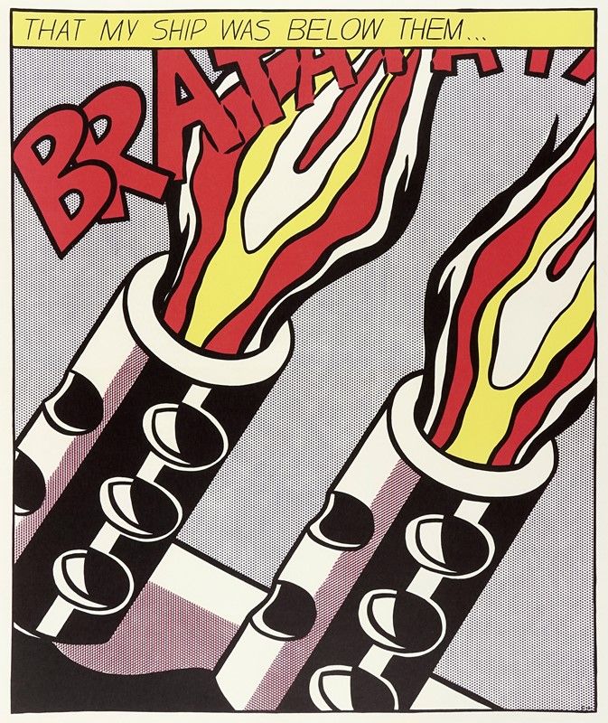Offset. mm 630x520 cad. Dati editoriali stampati al verso di ciascun foglio. Pubblicazione: Mary Lee Corlett, The prints of Roy Lichtenstein. A catalogue raisonné 1948-1997, introduction by Ruth E. Fine, Hudson Hill Press, N. Y., in association with National Gallery of Art, Washington, 2002, p. 324, n. App. 5. Edizioni Stedeliijk Museum, Amsterdam, stampatore Drukkerij Luii & Co., Amsterdam.