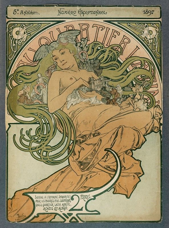 Litografia a colori. mm 430x310. Foglio: 430x310. Firmata in lastra in basso a sinistra. Titolata e datata in lastra al margine superiore. Bellissima copertina con dettagli oro del 5o anno del 1897.