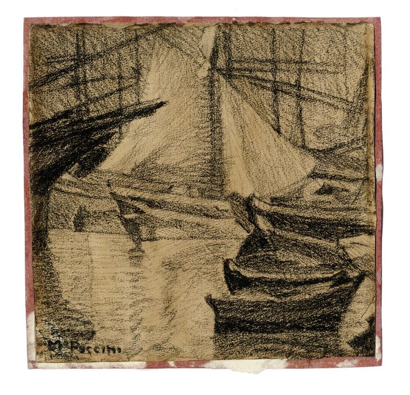 Carboncino su carta. mm 160x160. Firmato in basso a sinistra.
