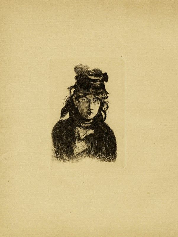 Acquaforte su carta vergellata con filigrana. mm 115x75. Foglio: mm 260x200. Incisione nel III stato su 3. Incisione Impressa nel 1910 proveniente da un ritratto a olio di Berthe Morisot che Manet eseguì nel 1872.