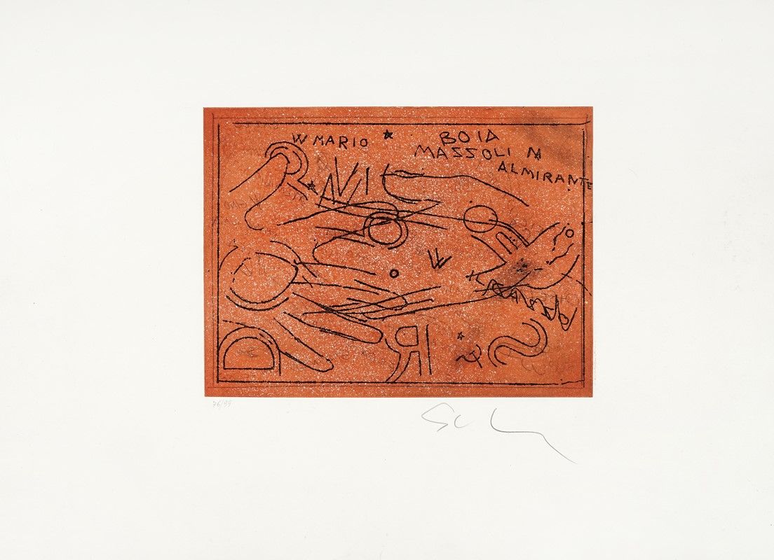 Acquatinta. mm 245x327. Foglio: mm 500x700. Firma a matita in basso a destra e tiratura in basso a sinistra. Es. 76/99.