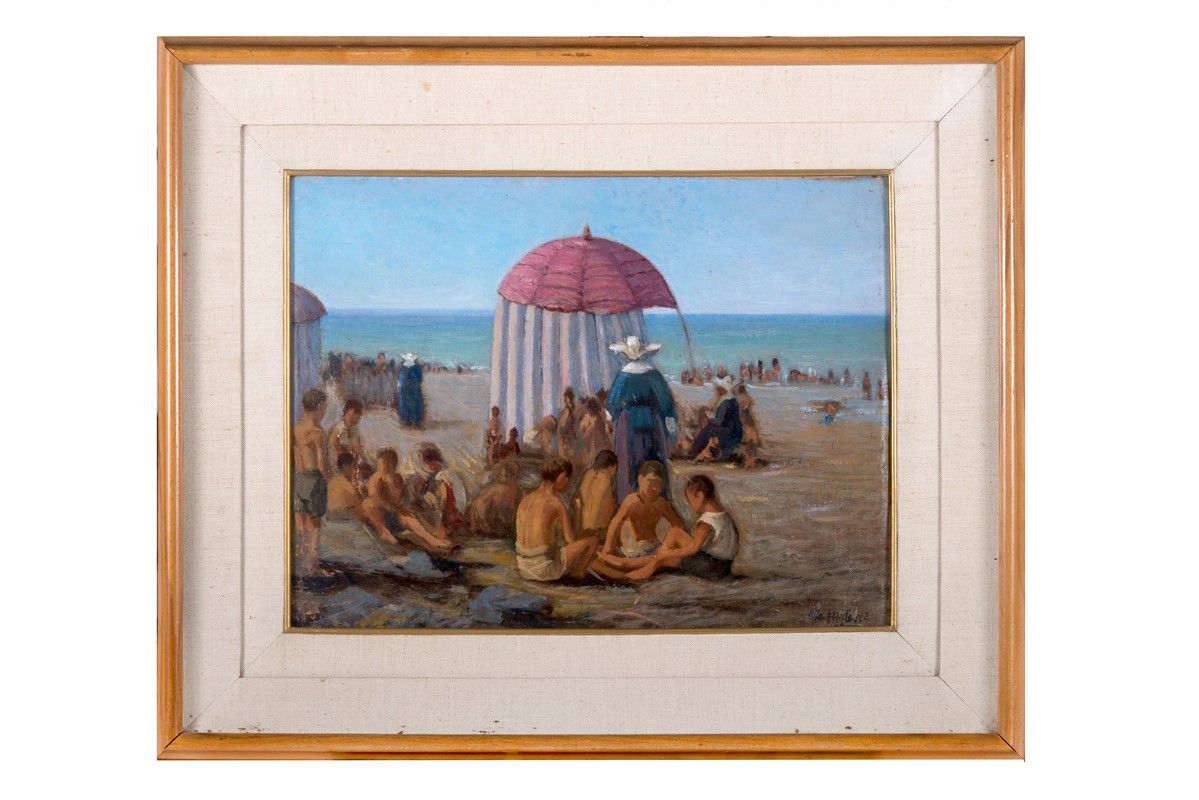 Olio su tela. cm 41,5x53. Firmato in basso a destra. Al verso: Etichetta a stampa "Mostra d'arte in favore dell' O. A. S. T." con dati dell'opera manoscritti.