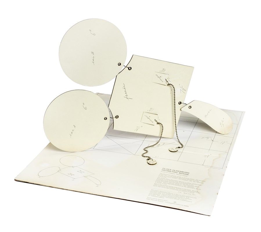 Cartone, offset e parti metalliche. Base: mm 500x420. Topo geometrico: mm 470x330. Dati editoriali a entrambi i pezzi. Prodotto da Gemini G.E.L. Questa è la versione cartacea in scala D del celebre Geometric Mouse presente in parecchie istituzioni dell'arte, tra cui il MoMA e il Walker Art Center.