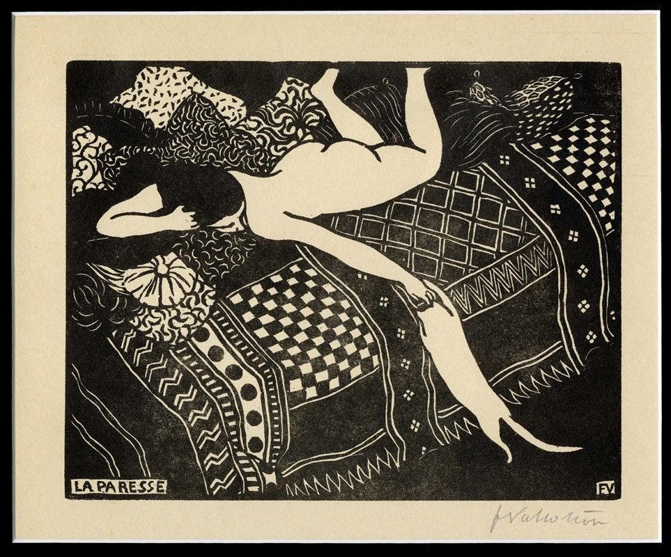 Xilografia. mm 176x220. Foglio: mm 252x330. Firmata a matita in basso a destra, siglata e titolata in lastra in basso ai lati. Al verso, all'angolo inferiore sinistro, timbro a inchiostro nero "Bolaffio Milano".