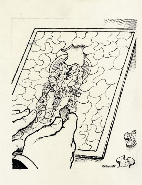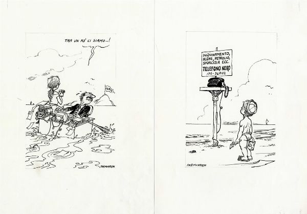 Raccolta di 10 matite e penne e inchiostro di china su carta leggera. mm 218/296x165/210. Ogni disegno presenta firma e data. Opere realizzate su carta intestata d'artista.