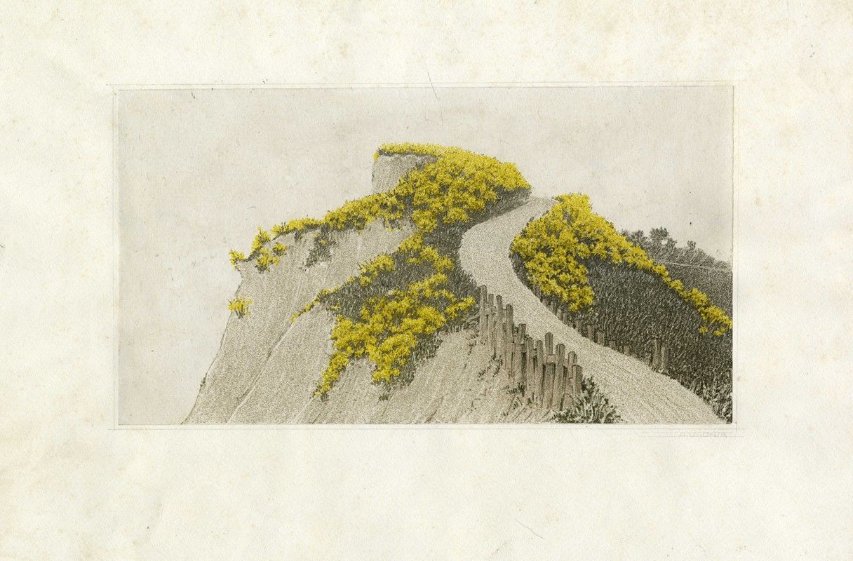 1) Mezzanotte. 1912. Litografia a colori. mm 130x130. Foglio: mm 135x135 (visibile). Siglata in lastra in alto a destra. Datata e titolata in lastra in basso a sinistra. Questa incisione ritrae la Collegiata di San Michele, a Brisighella, ripresa da Via Fossa. 2) Le ginestre. 1914. Litografia a colori. mm 138x250. Foglio: mm 318x417. Firma a matita in basso a destra vicino alla squadratura del foglio. Dedica a matita "Ad Adolfo De Carolis con ammirazione" controfirmata all'angolo inferiore destro del supporto. Rara incisione tirata in soli 8 esemplari.