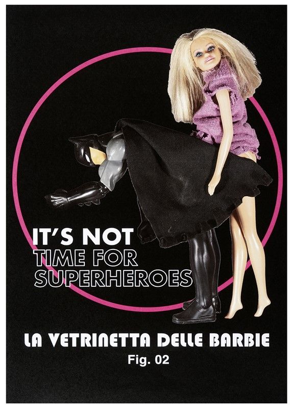 It's not time for Superheroes e L'inchino. Offset. mm 420x296 cad. Tag a penna a sfera nera all'angolo inferiore destro del verso.