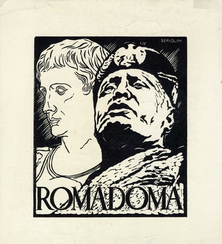 1) Roma Doma. 1930 ca. Xilografia. mm 235x200. Foglio: mm 324x293. Firma in lastra in alto a destra. Titolo in lastra al margine inferiore. 2) Adolf Hitler. 1930 ca. Xilografia. mm 275x205. Foglio: mm 324x285. Firmata in lastra in basso a sinistra.