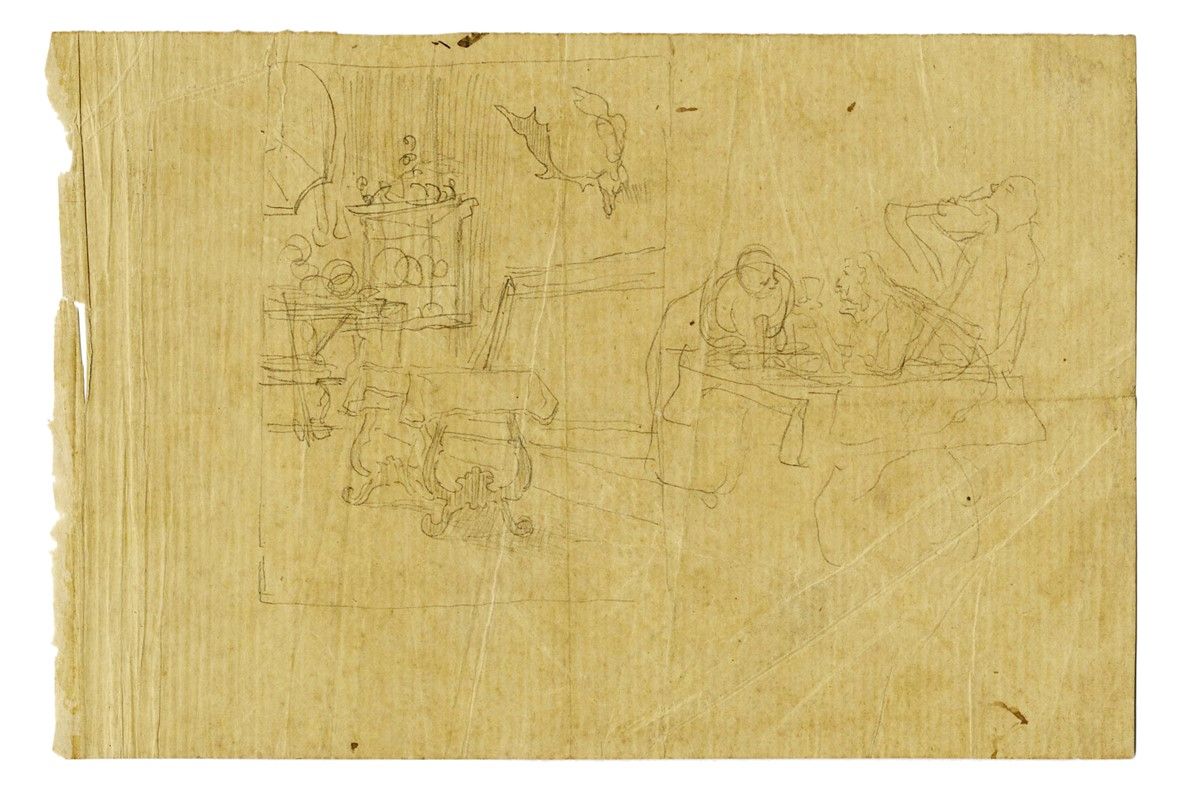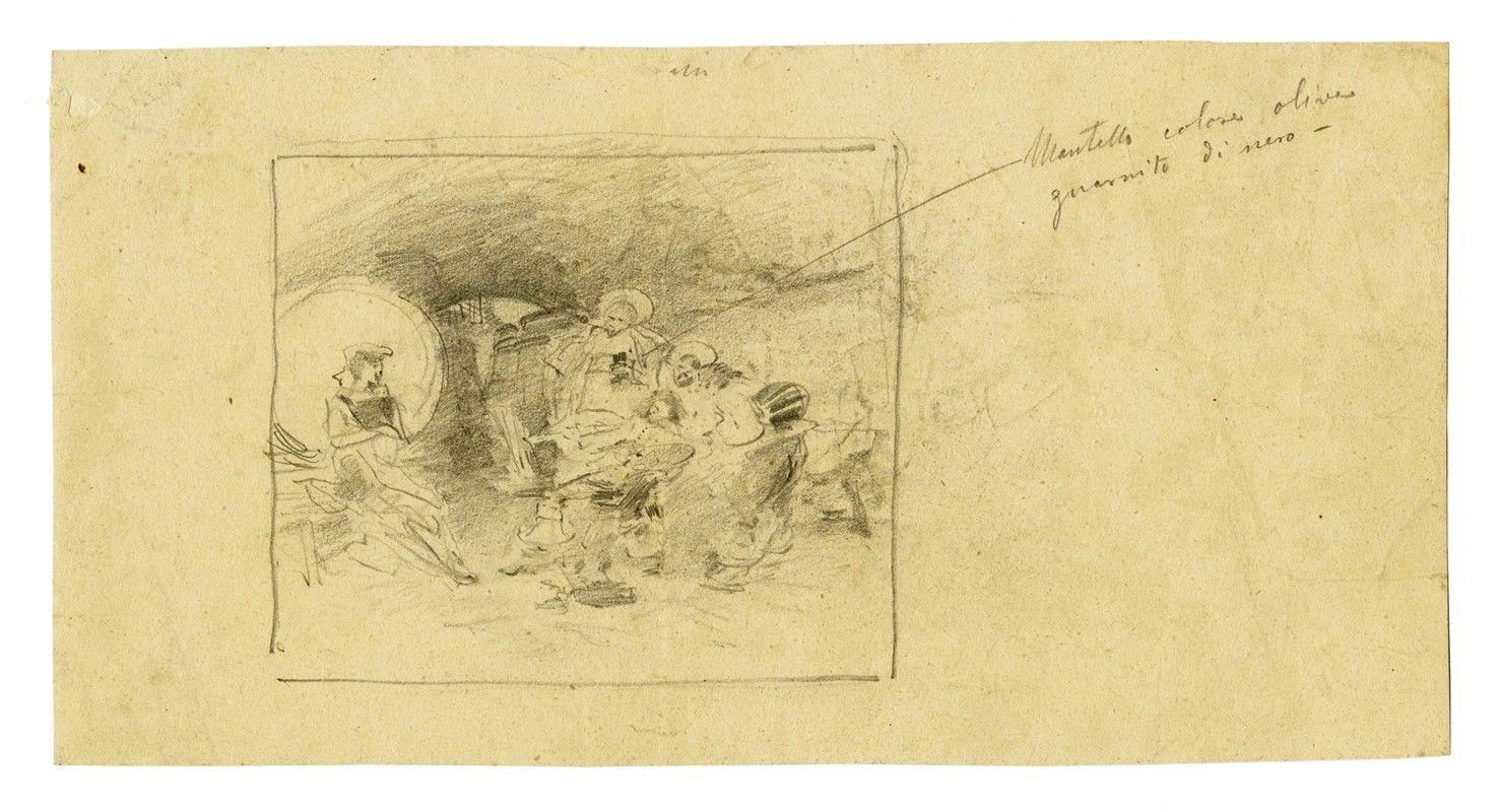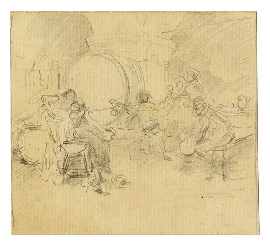 Raccolta di 26 matite e penne e inchiostro di china su carta. mm 50/240x82/310. Alcuni disegni presentano un grado di dettagli maggiore rispetto ad altri piccoli schizzi recanti iscrizioni ed appunti a matita. Molte opere sono illustrate recto/verso.