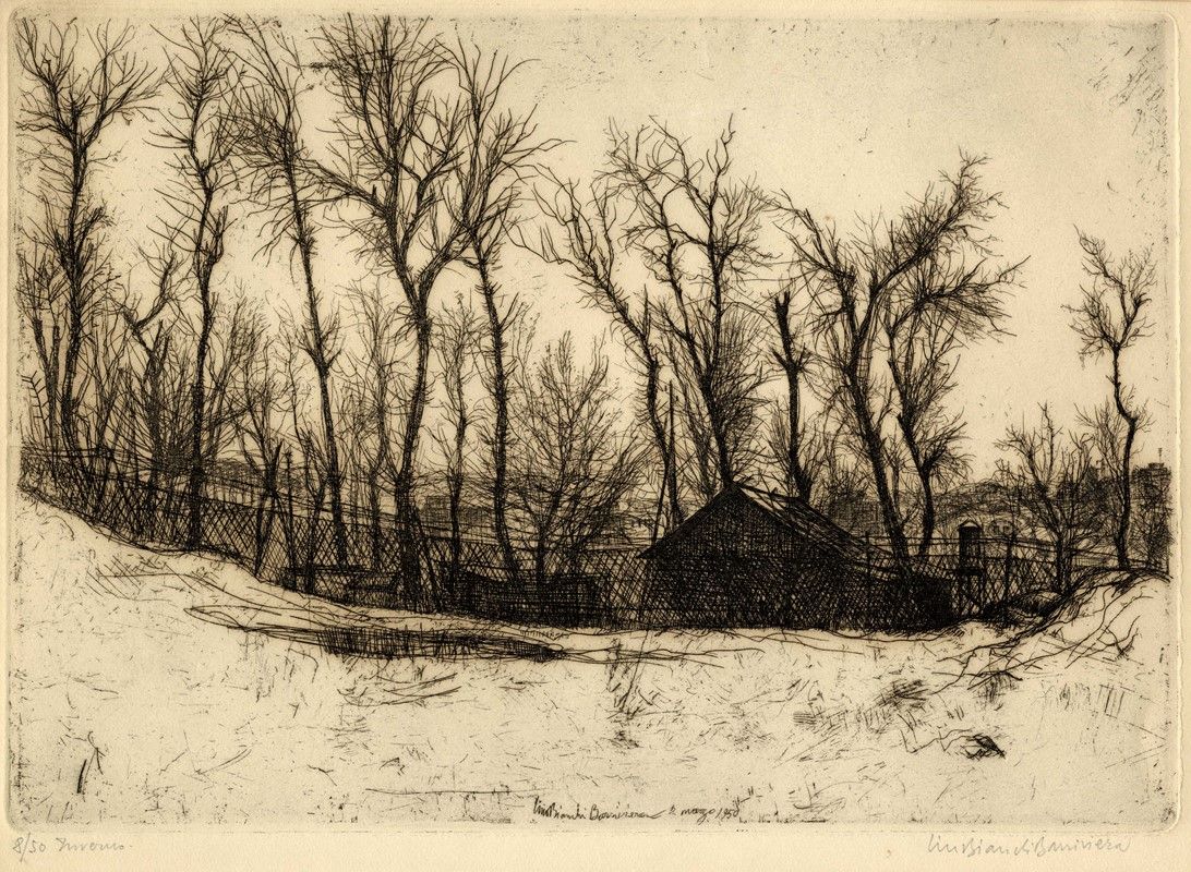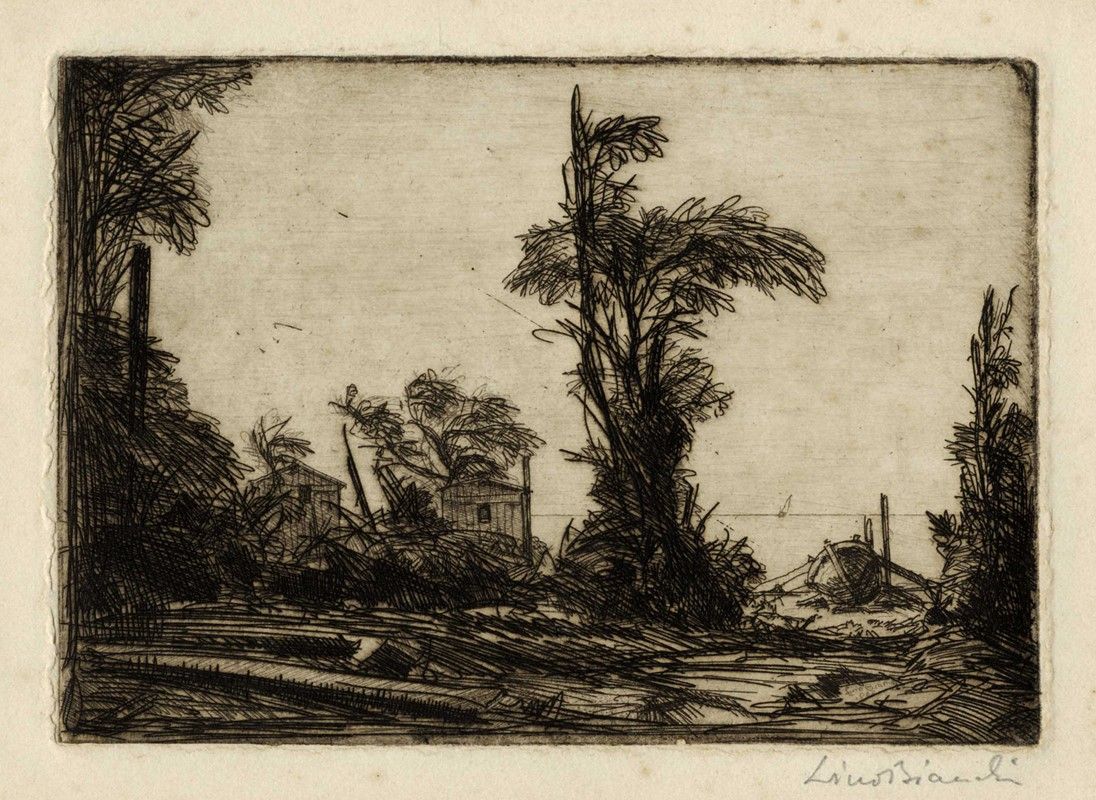 1) Chirignago. 1932. Acquaforte. mm 80x220. Foglio: mm 245x320. Firmata e datata in lastra in basso a destra, controfirmata e controdatata a matita in basso a destra. Titolo e numero di tiratura a matita in basso a sinistra. Es. 3/50. 2) Paesaggio con barca. 1935. Acquaforte. mm 100x140. Foglio: mm 135x175. Firmata e datata in lastra in basso a destra, controfirmata a matita in basso a destra. 3) Inverno. 1950. Acquaforte. mm 240x340. Foglio: mm 380x455. Firmata e datata in lastra in basso al centro, controfirmata a matita in basso a destra. Titolo e numero di tiratura a matita in basso a sinistra. Es. 8/30.