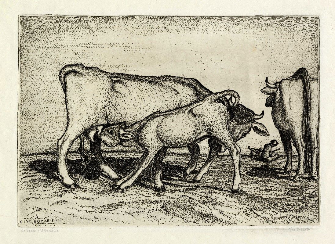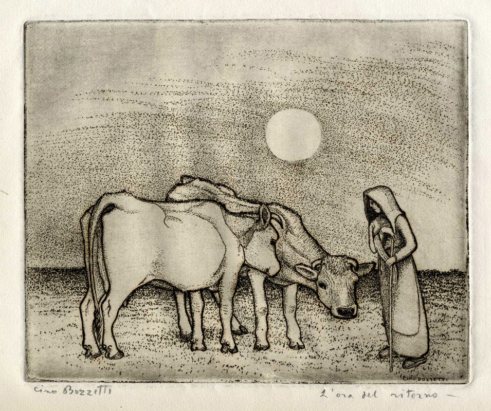 1) L'ora del ritorno. Acquaforte. mm 195x235. Foglio: mm 350x447. Firmata in lastra in basso a destra, controfirmata a matita in basso a sinistra. Titolata a matita in basso a destra. 2) La strada di campagna. Acquaforte. mm 105x155. Foglio: mm 255x335. Firmata in lastra in alto a sinistra, controfirmata a matita in basso a sinistra. Titolata a matita in basso a destra. 3) La vacca e il vaccino. Acquaforte. mm 205x285. Foglio: mm 265x400. Firmata in lastra in basso a sinistra, controfirmata a matita in basso a destra. Titolata a matita in basso a sinistra. Iscritto "27" in lastra al margine superiore centrale del foglio.