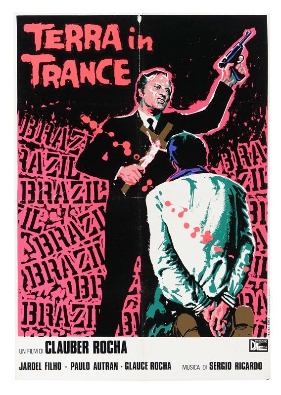 Raccolta di 3 manifesti tra offset e serigrafie. mm 940/980x610/698. Foglio: mm 1000x700 cad. Ogni opera presenta titolo, cast e dati editoriali ai margini di ciascuna lastra. Compongono il lotto le pellicole: Una coppia sposata di Allan King, L'ospite di Liliana Cavani e Terra in trance di Clauber Rocha.