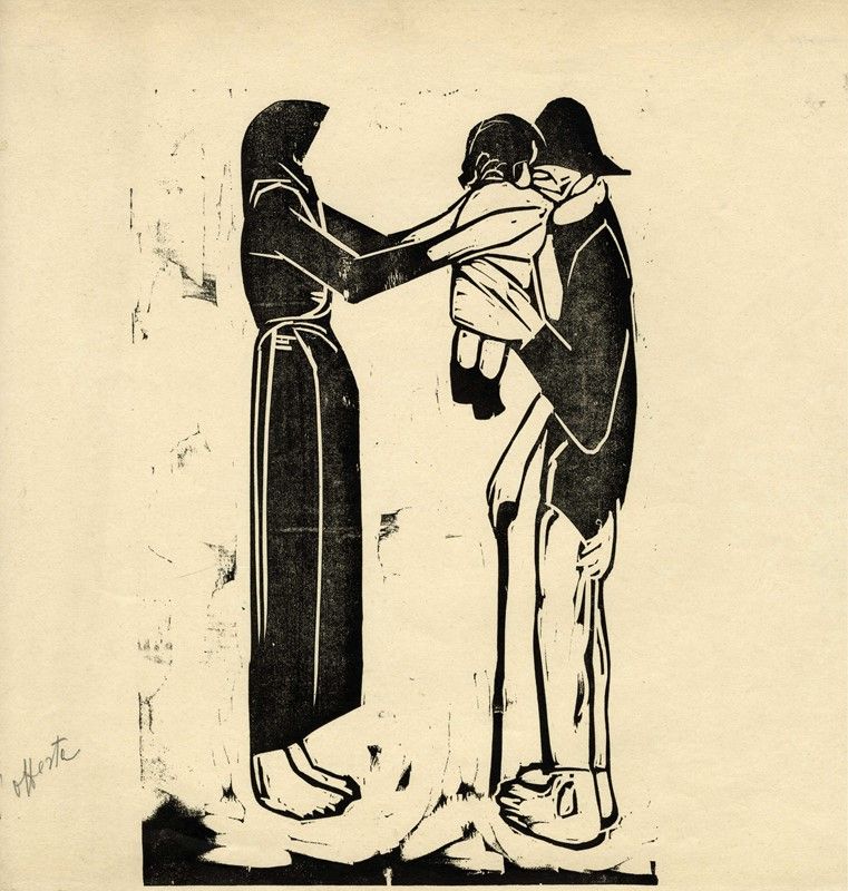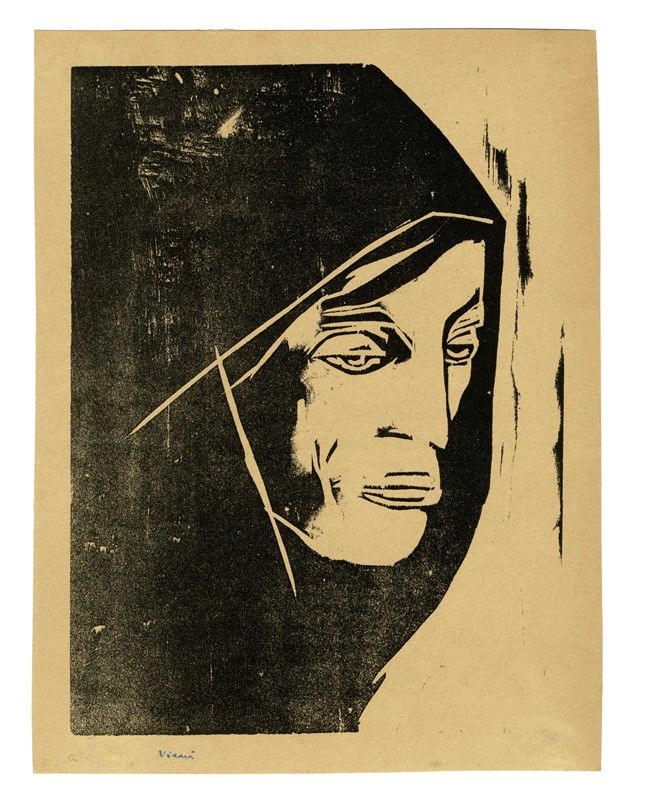 1) L'offerta. Xilografia. 1910. mm 270x185. Foglio: mm 313x344. FINI, 138. Undicesima xilografia del fascicolo Il martirio, 1915. Titolo iscritto a matita al margine sinistro. Uno degli esemplari del fascicolo si trova presso il Gabinetto Stampe degli Uffizi. SI AGGIUNGE: Id., Raccolta di 3 xilografie estratte da L'Eroica. mm 215/225x150/210. Foglio: mm 245/285x186/220. Un foglio presenta una seconda incisione stampata al verso. Compongono il lotto le xilografie: Mia madre, Testa virile, Putti e Povera gente.